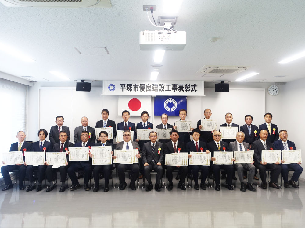 令和7年10月28日、令和7年度 平塚市優良建設工事表彰が行われ、当社施工の「四之宮公民館新築工事(建築)」が優良建設工事表彰を受賞いたしました。